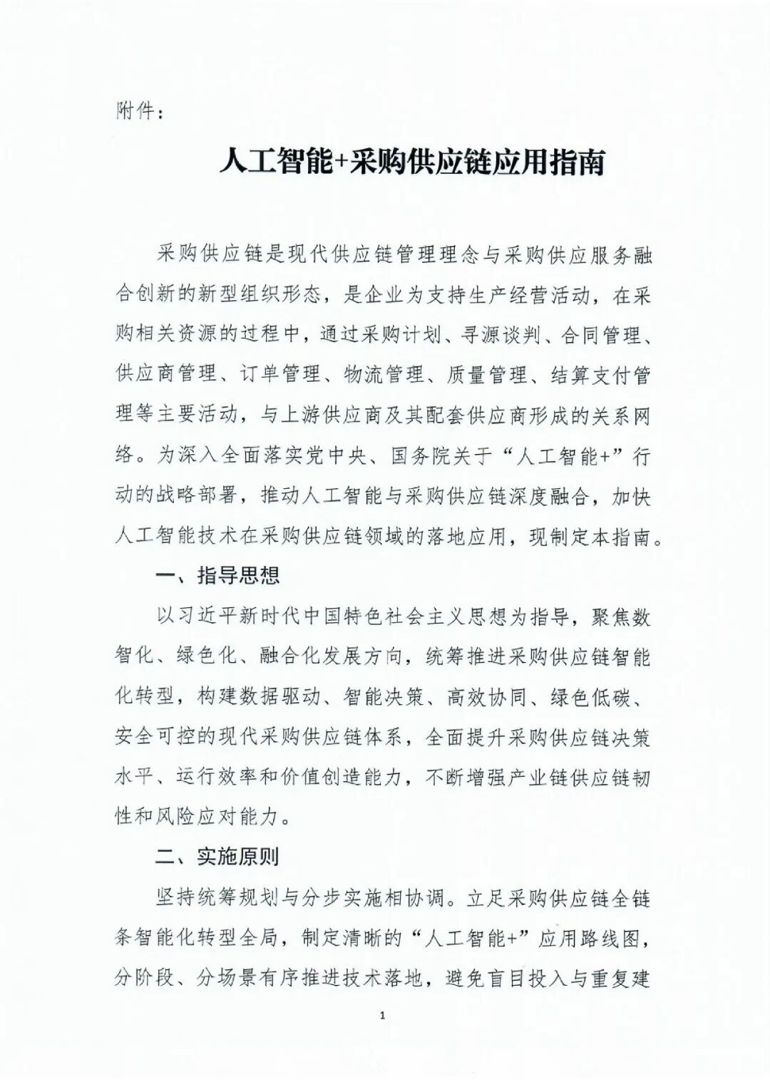 当前,全球新一轮科技革命与产业变革深入发展,人工智能作为引领未来的战略性技术和驱动产业变革的核心力量,正以前所未有的广度和深度重塑各行各业。习近平总书记在多个场合强调,“要加快发展新质生产力”,并指出以科技创新催生新产业、新模式、新动能。近日,中国物流与采购联合会(以下简称“中物联”)正式发布《人工智能+采购供应链应用指南》(物联采字〔2025〕217号)(以下简称《指南》),这是我国首部系统性指导人工智能技术与采购供应链深度融合的纲领性文件,旨在积极响应国务院关于深入实施“人工智能+”行动的号召,落实商务部等八部门《加快数智供应链发展专项行动计划》的具体要求。
