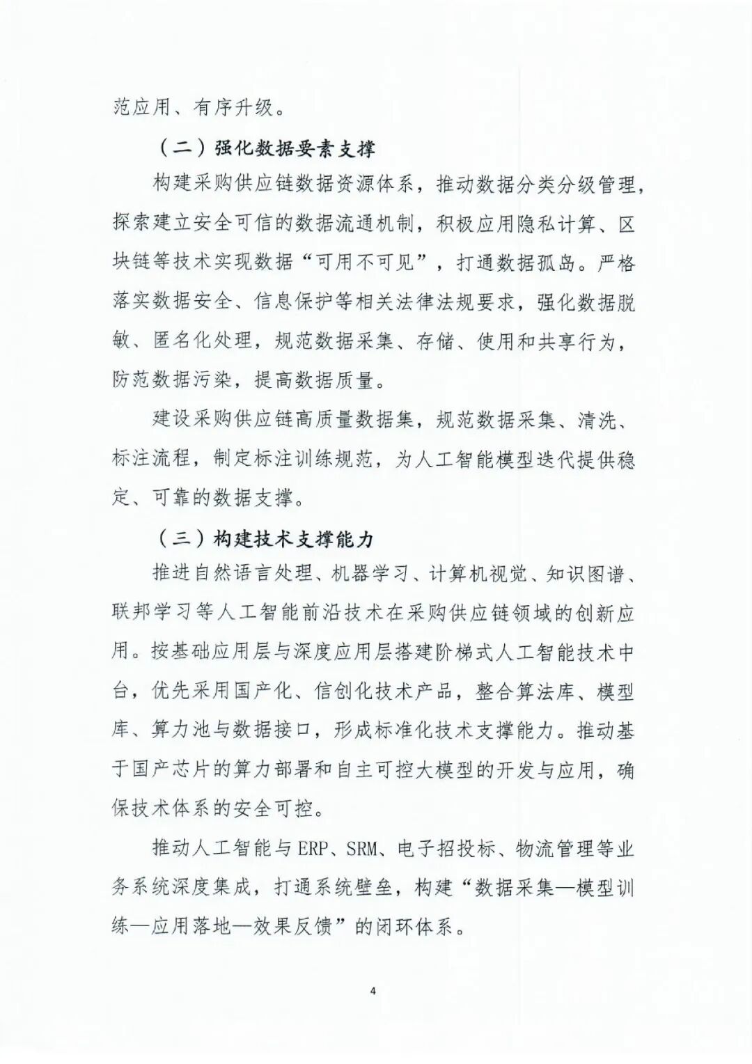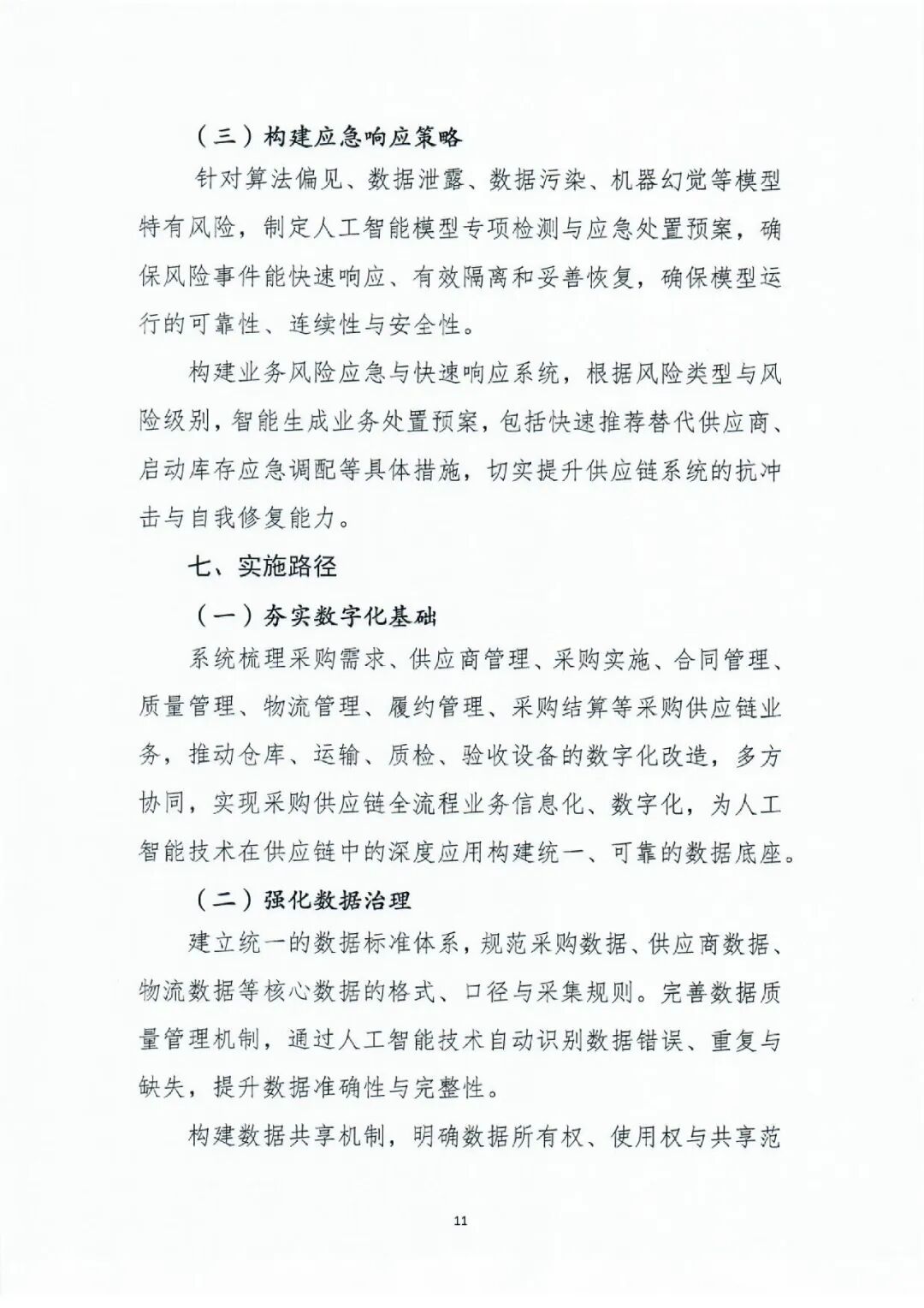 万丈高楼平地起。人工智能在采购供应链的深度应用,离不开坚实的数据、标准、技术与人才基座。《指南》以专章形式对“夯实发展基础”进行了周密部署,体现了“先筑基、后起楼”的科学精神。